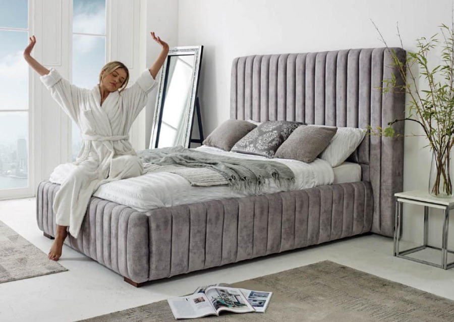 The Grande Bed frame Has a Choice of Fabric Options & Colours To Have The Bed Finished With .