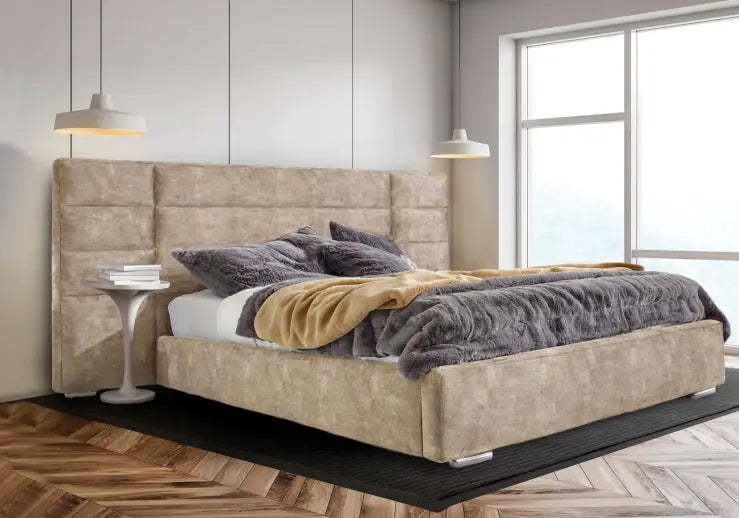 The Serren Bed frame Has a Choice of Fabric Options & Colours To Have The Bed Finished With .