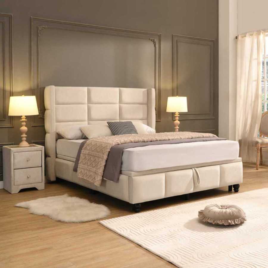 Hama Ottoman Bedframe Available in 2 Colours Grey (shown) or Cream Plush Velvet